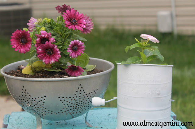 I had plans to use this tool box for my gardening tools. Sis came outside and had the idea to use it as a planter. We punched holes in the bottom of it so it would drain. We found out later from our good friend, HC-G that we could've just put rocks on the bottom. She learned that from Pinterest. I felt full of shame! Why would I even venture into a new project without consulting Pinterest first? We were in the moment, that's my only excuse!