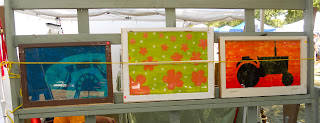 She paints on windows BACKWARDS! I thought these three were awesome. I love the tractor but it doesn't really go with our house. Boo!