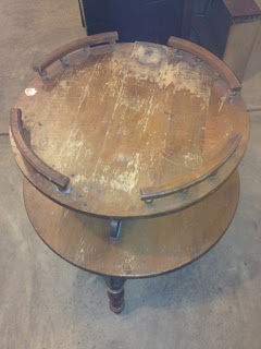 Round Table-Since I'm keeping this AWESOME round table, I can tell you it only set me back $2. I know, I should have asked her to take less! HA I painted it a turquoise color and it will be headed straight to my family room after this weekend! Right after I take an "after" picture for my next post!