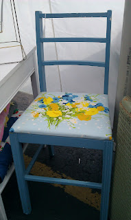 Cute Blue Chair- Now you get to see an actual "before and after". We got this cute chair at a yard sale. We loved the color and chippiness so we kept it.