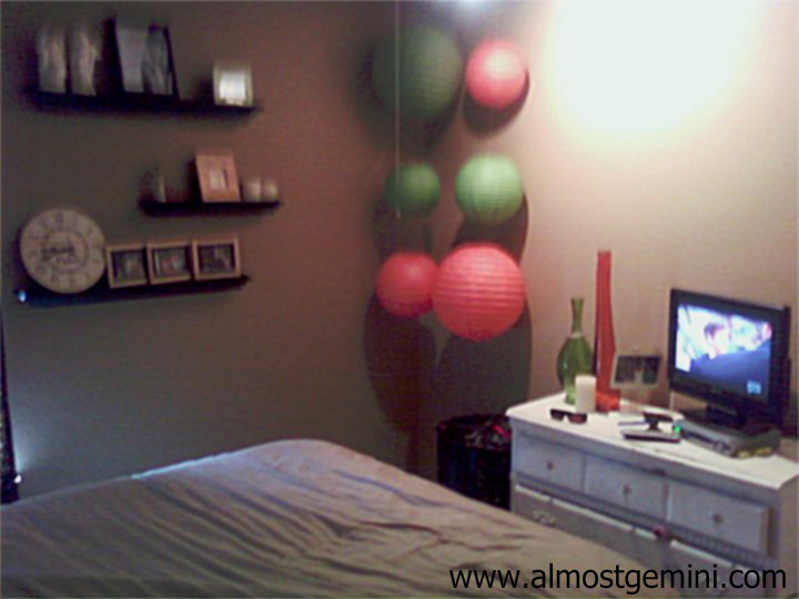 I bought the lanterns and bottles at Hobby Lobby. Of course they were half off! I'm thinking both were maybe a combined $20! The dresser was mine from when I was little. Mama put a nice fresh coat of white paint! It looks pretty BAD ASS, if I do say so myself.